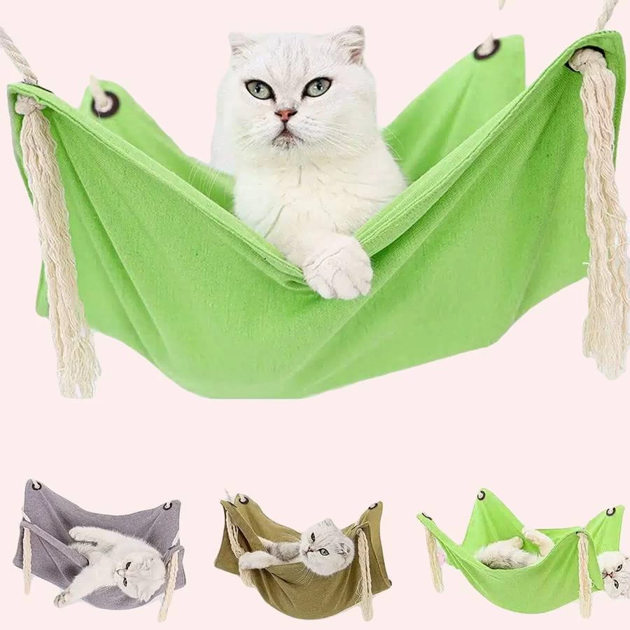 Notre hamac pour chat en coton, il est fabriqué en coton doux et respirant, il est facile à nettoyer et possède une texture douce que votre chat adorera. De plus, son design confortable permet à votre chat de se prélasser avec style.