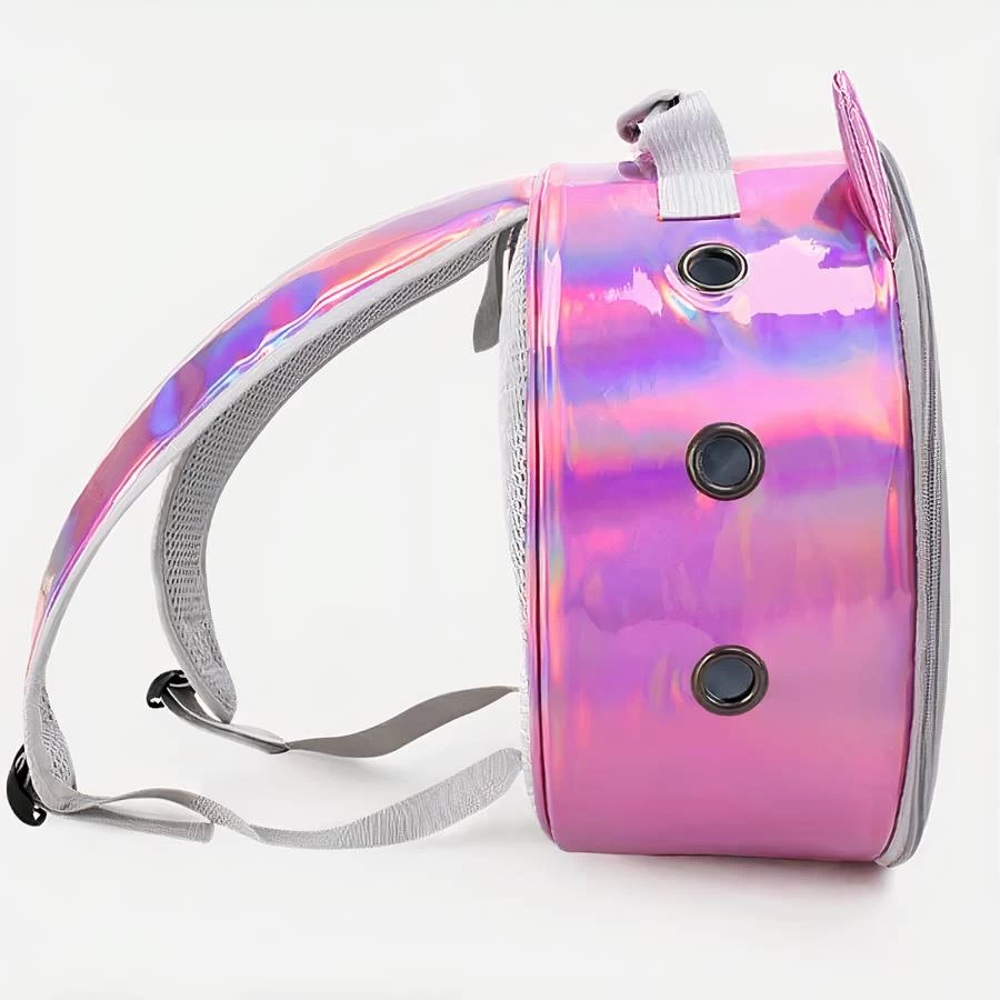 Ce sac à dos rond transparent et respirant pour chat est équipé de deux longues bretelles réglables qui permettent de le porter facilement et agréablement.